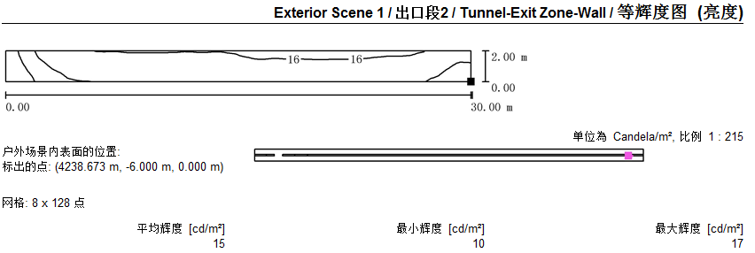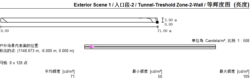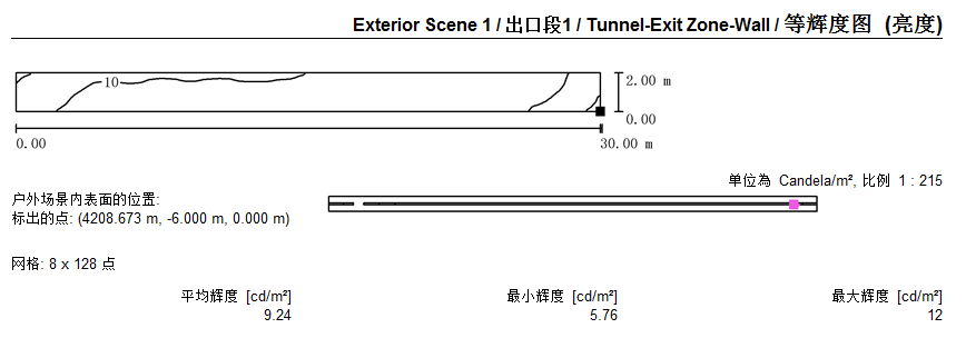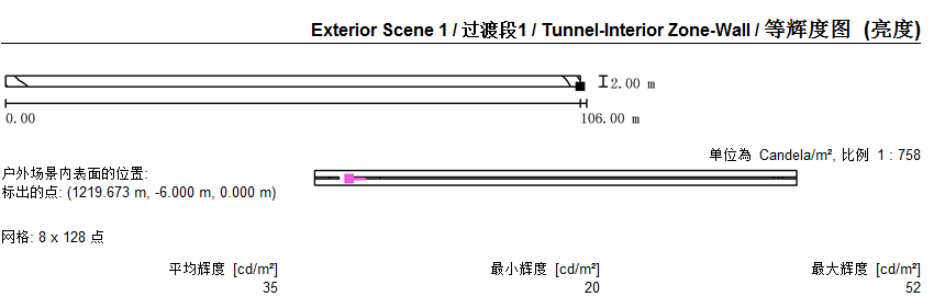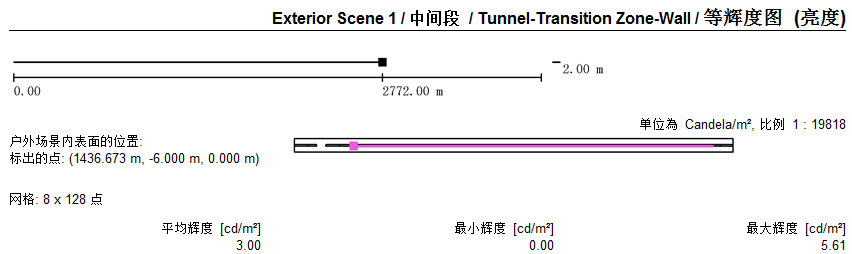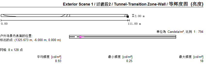 2)隧道各段燈具布置及照度模擬值: